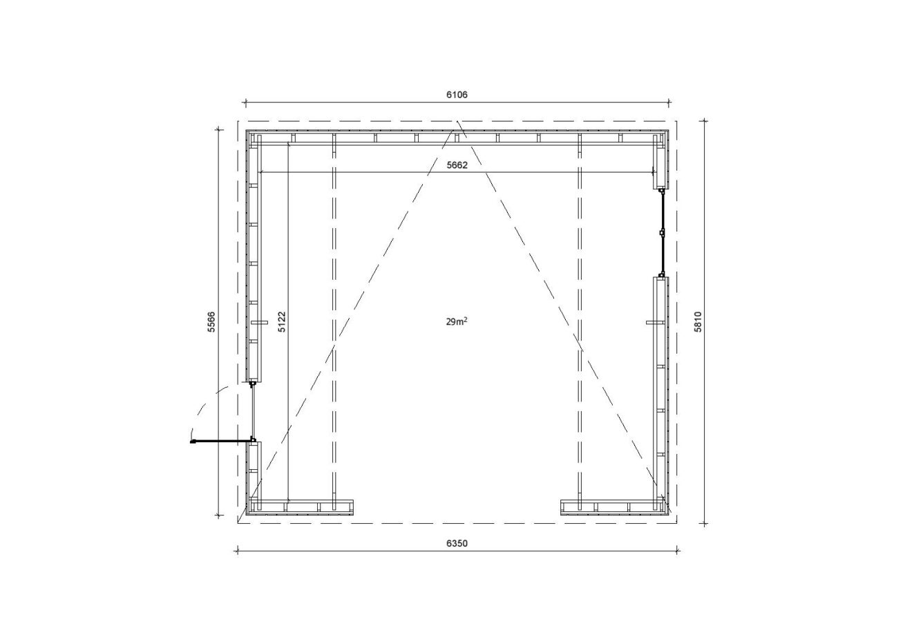 Willkommen zur Holzgarage Fagus V3 mit Holzverkleidung ohne Tor. Mit Präzision und Liebe zum Detail gefertigt, bietet diese Garage das gleiche Maß an Qualität und Langlebigkeit wie unser Standardmodell, jedoch mit einer zusätzlichen Holzverkleidung, die die Gesamtwandstärke auf 220 mm erhöht. Diese robuste Konstruktion gewährleistet eine zuverlässige und langlebige Lösung für Ihre Anforderungen.
