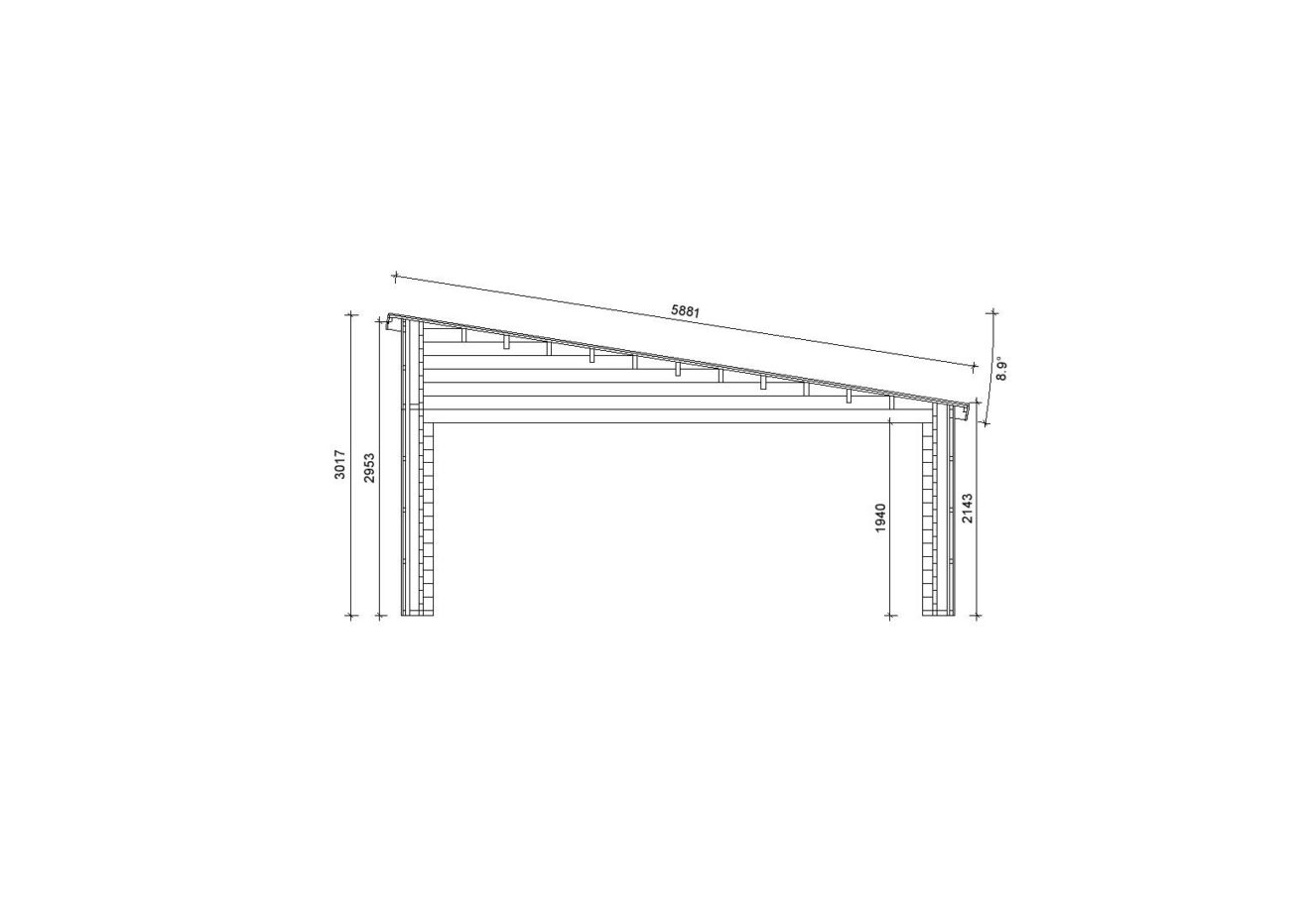 Das charakteristische Pultdach und die robuste Konstruktion mit zusätzlicher Holzverkleidung verleihen der Holzgarage eine zeitlose Eleganz und Beständigkeit. Der breite Ausschnitt von 3 Metern bietet die Möglichkeit mit einem breiten Tor Ihrer Wahl zu versehen, das am besten zu Ihrem persönlichen Stil und Ihren Anforderungen passt.