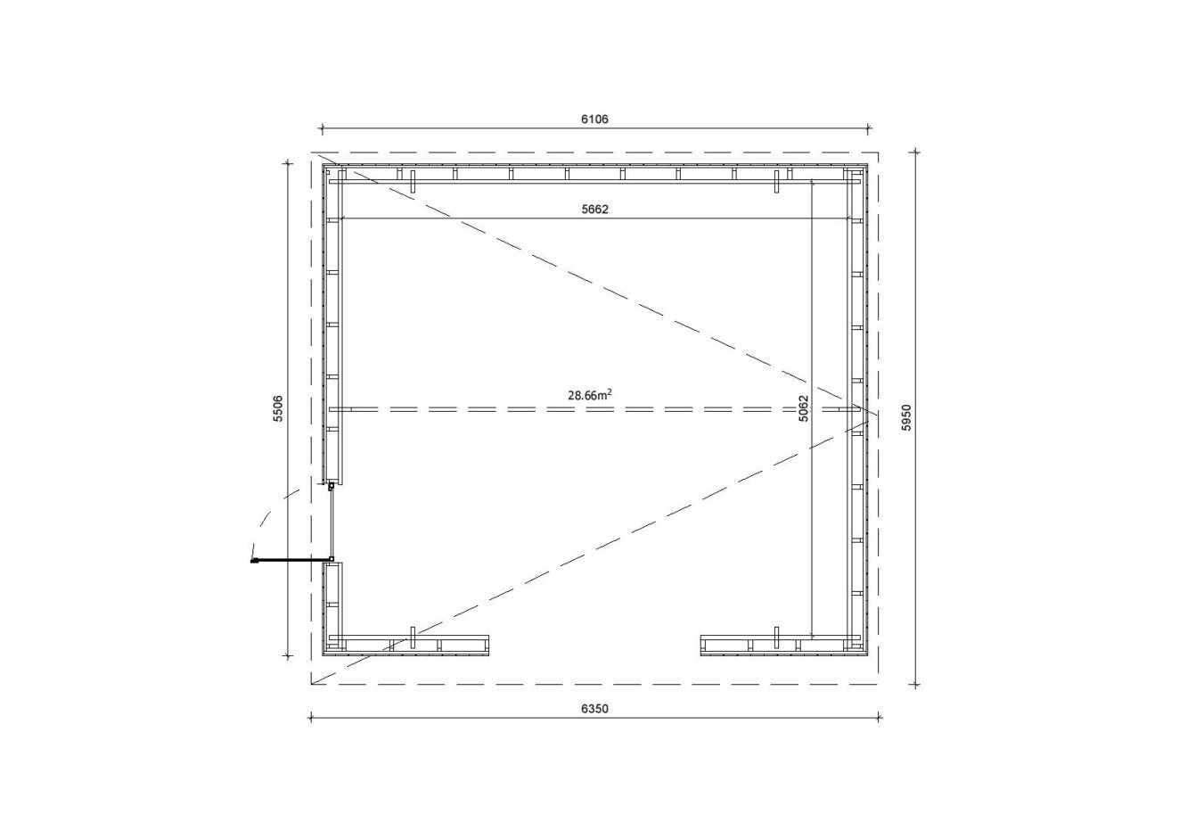 Blockbohlengarage Taxus mit Holzverkleidung, 6×6 m, BF 34 m² ohne Tor