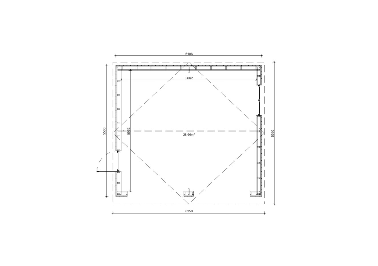 Doppelgarage aus Holz Larix V2 mit Holzverkleidung, 6×6 m, BF 34 m² ohne Tore