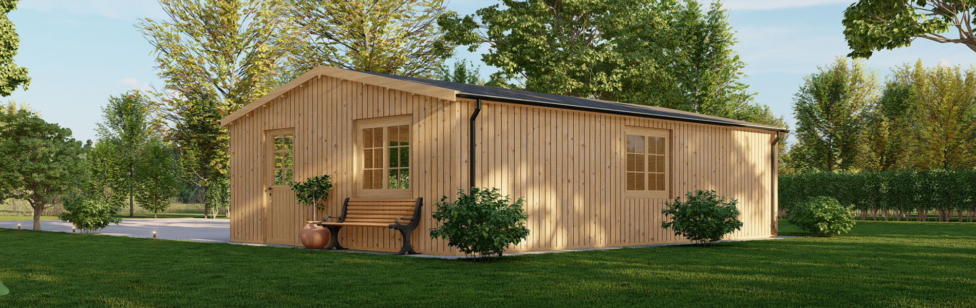 Tauchen Sie Ihr Blockbohlenhaus, Gartenhaus oder Holzgarage in natürliche Eleganz mit unserer senkrechten Holzverkleidung ein! Diese Verkleidungslösung verleiht jedem Produkt einen Hauch von modernem Charme und zeitloser Schönheit. Die Verkleidungsbretter aus nordischer Fichte strahlen Wärme und Gemütlichkeit aus. Mit einer Breite von 16x95mm bieten sie eine robuste und gleichzeitig ästhetisch ansprechende Oberfläche. Die unterstützenden Träger aus 30x50mm nordischer Kiefer sorgen für eine stabile Montage. Die senkrechte Ausrichtung verleiht Ihren Wänden eine dynamische und moderne Ästhetik, die perfekt mit verschiedenen Stilen harmoniert. Diese offene Schalung ermöglicht eine luftige und einladende Atmosphäre, während sie gleichzeitig für eine zuverlässige Struktur sorgt. Egal, ob Sie Ihrer Holzgarage einen Hauch von Natürlichkeit verleihen oder einem Blockbohlenhaus eine einladende Note verleihen möchten, unsere senkrechte Holzverkleidung ist die richtige Wahl.