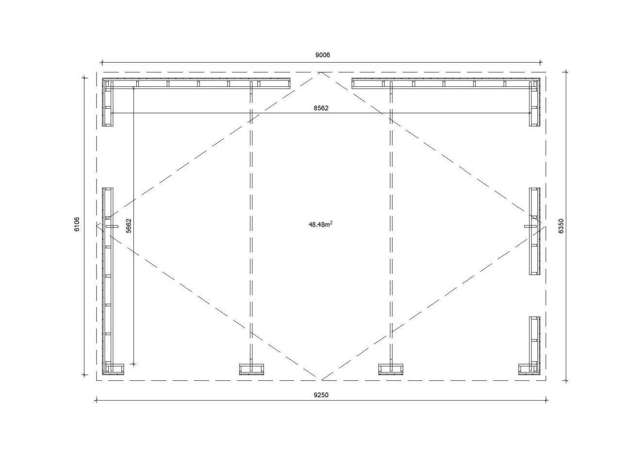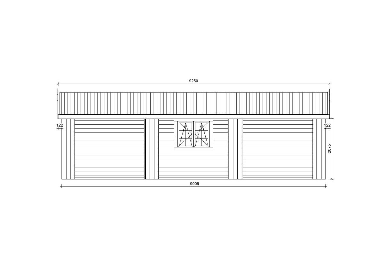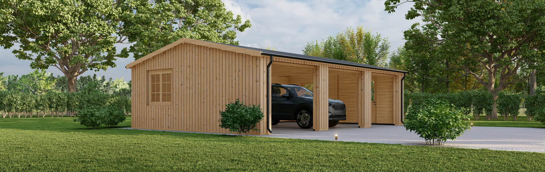 Dreifachgarage aus Holz Picea mit Holzverkleidung, 9×6 m, BF 55 m² ohne Tore