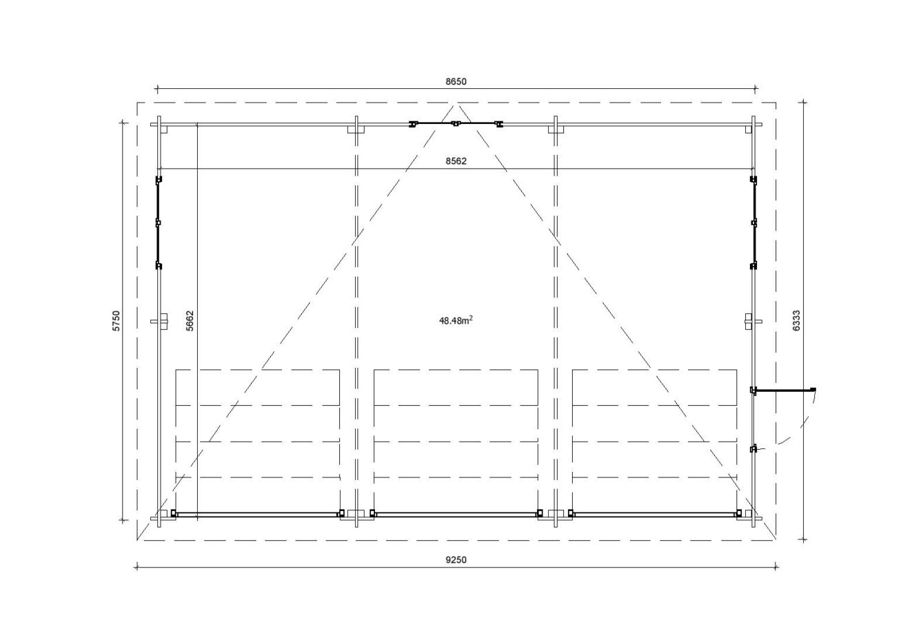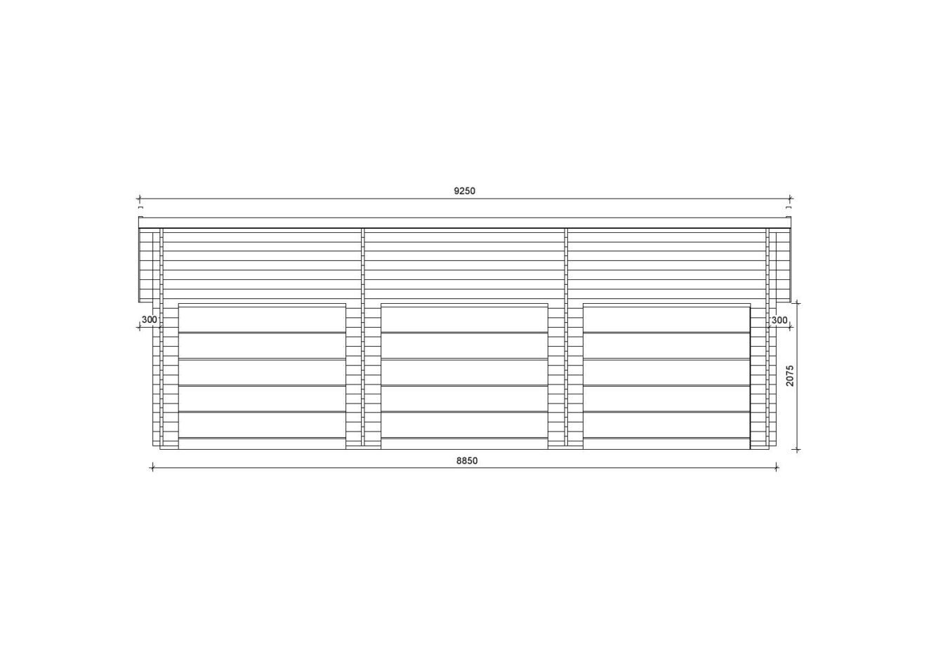 Dreifachgarage aus Holz Pinus, 9×6 m, BF 50 m² mit Sektionaltoren