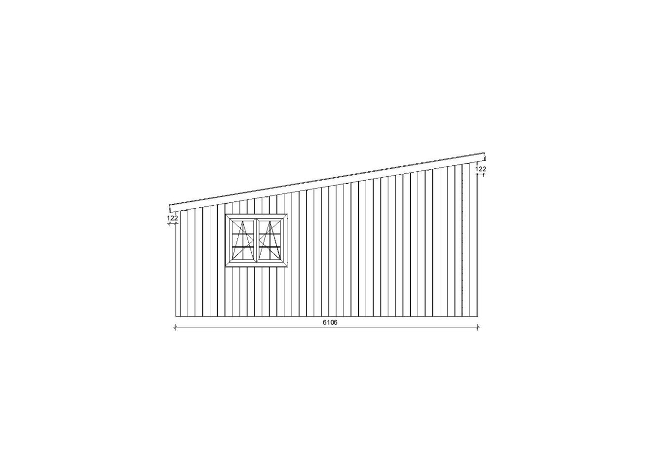 Die solide Konstruktion aus hochwertigen 44mm Nut- und Federbrettern mit einer zusätzlichen Holzverkleidung, die die Gesamtwandstärke auf 220 mm erhöht, gewährleistet langanhaltende Stabilität und ein zeitgemäßes Erscheinungsbild. Die Abwesenheit vorinstallierter Tore ermöglicht es Ihnen, die für Sie am besten geeigneten Tore auszuwählen, die Ihren Anforderungen entsprechen. Drei Fenster sorgen für eine angenehme natürliche Beleuchtung im Inneren und schaffen eine helle und einladende Atmosphäre. Das Pultdach mit einer Neigung von 9° und einer Firsthöhe von 331 cm vervollständigt das Gesamtbild und verleiht der Garage eine moderne Silhouette.