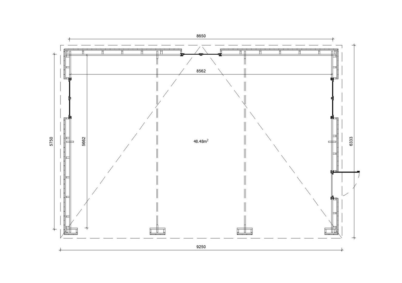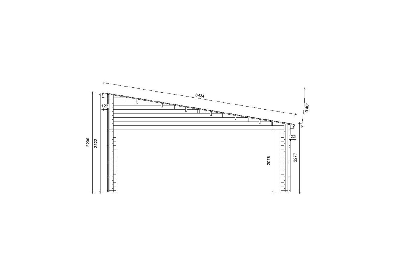 Dreifachgarage aus Holz Pinus mit Holzverkleidung, 9×6 m, BF 55 m² ohne Tore