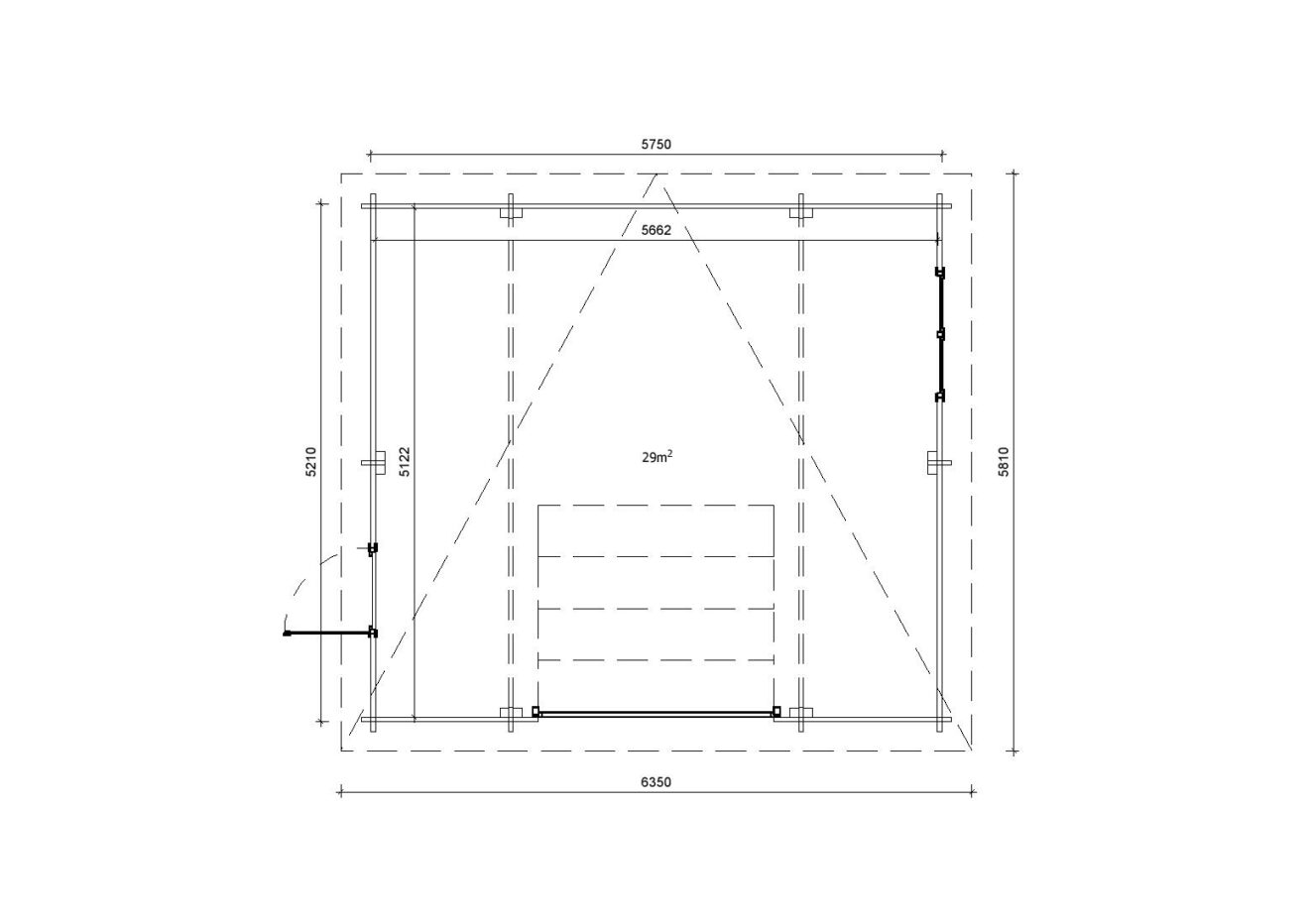Einzelgarage aus Holz Fagus, 6×6 m, BF 30 m² mit Sektionaltor