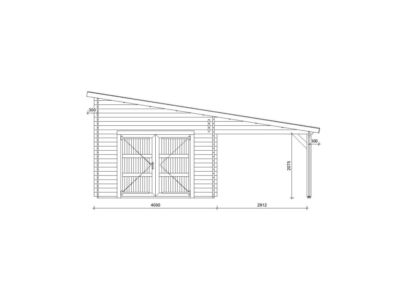 Holzgarage mit Carport Carpinus, 7×6 m, BF 40 m² mit Holztor