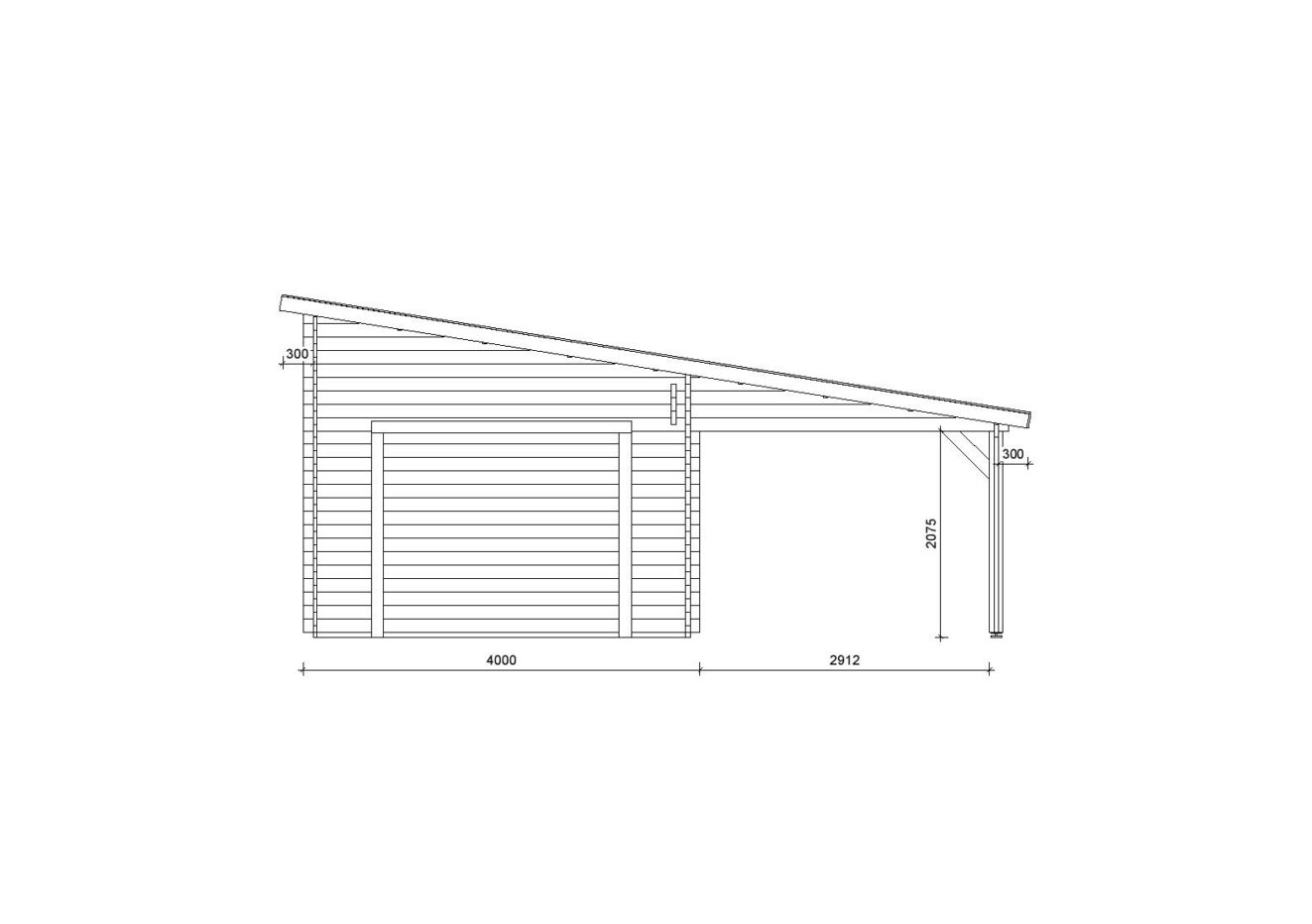 Holzgarage mit Carport Carpinus, 7×6 m, BF 40 m² ohne Tor