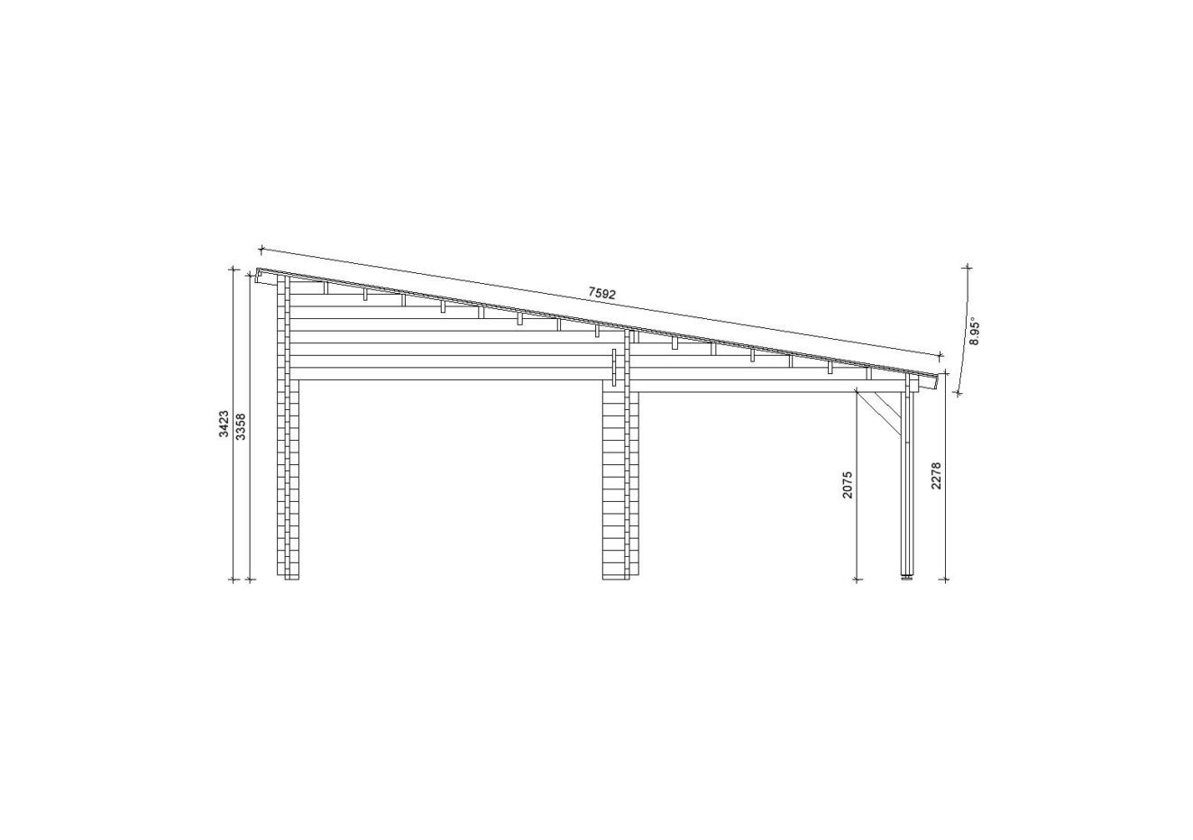 Mit einem umgekehrten Pultdach und einer Dachneigung, die perfekt für die Installation von Solarpaneelen geeignet ist, bietet die Holzgarage Carpinus mit Carport ohne Tor nicht nur Schutz vor den Elementen, sondern auch die Möglichkeit, nachhaltige Energie zu nutzen.