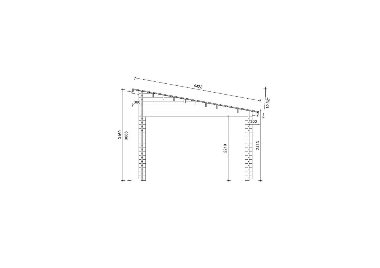 Das Pultdach mit einer Neigung von 10° verleiht der Holzgarage Sorbus ein modernes und ansprechendes Aussehen. Der Unterschied zu anderen Modellen besteht darin, dass das Dach in eine Richtung verläuft, die ideal ist, um das Maximum an Sonnenlicht zu empfangen, falls die Ausrichtung mit der Sonneneinstrahlung auf Ihrem Grundstück übereinstimmt.
