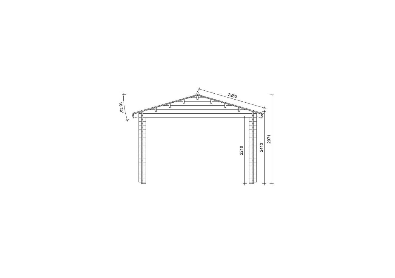 Diese Garage ist giebelfrei gestaltet, was bedeutet, dass Sie den gesamten Raum innerhalb der Garage voll nutzen können, ohne durch störende Giebel behindert zu werden. Mit einer bebauten Fläche von 19,46 m² und einer Firsthöhe von 291 cm bietet die Holzgarage Alnus ausreichend Platz für ein Fahrzeug oder kann als Lagerraum verwendet werden.