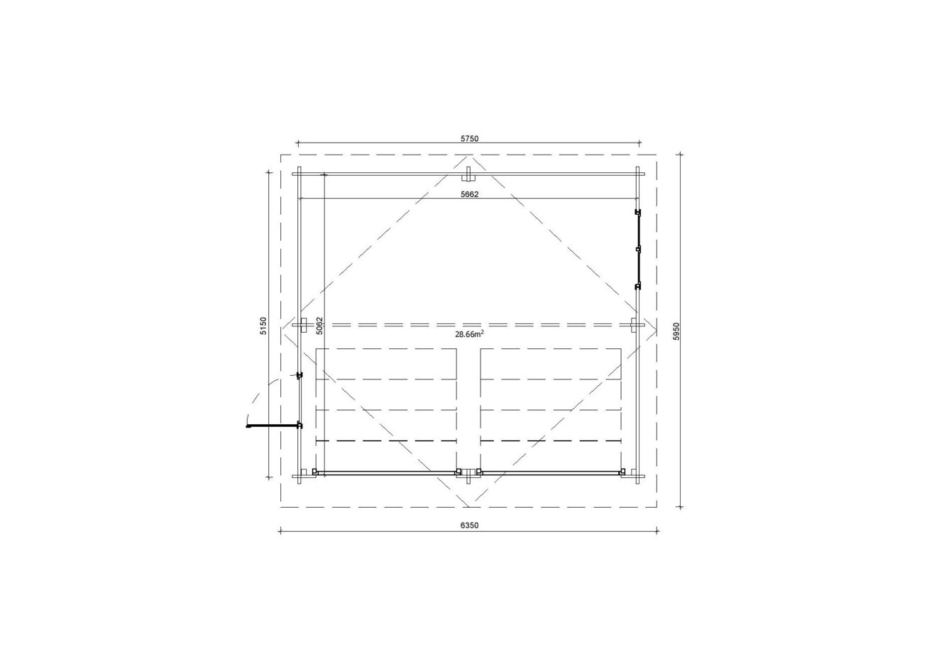 Holzgarage mit Satteldach Larix V2, 6×6 m, BF 30 m² mit Sektionaltoren