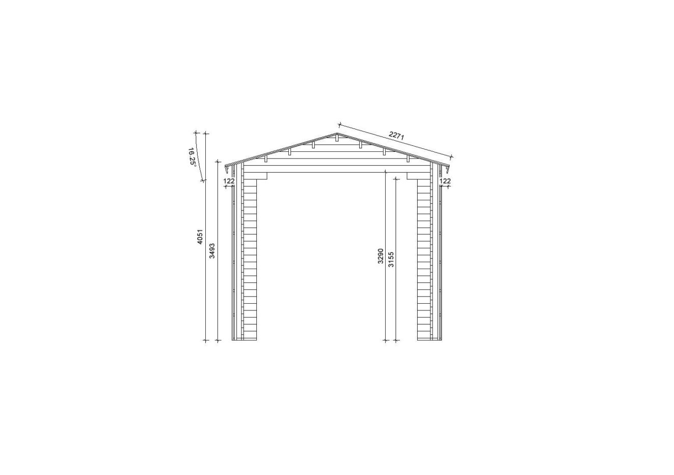 Die hochwertige Holzverkleidung verleiht der Garage nicht nur eine ästhetische Note, sondern bietet auch zusätzliche Stabilität und Widerstandsfähigkeit. Mit einer beeindruckenden Firsthöhe von 398 cm bietet die Wohnmobil Garage Betula ausreichend Platz für Ihr Wohnmobil und zusätzlichen Stauraum für Campingausrüstung und andere Gegenstände.